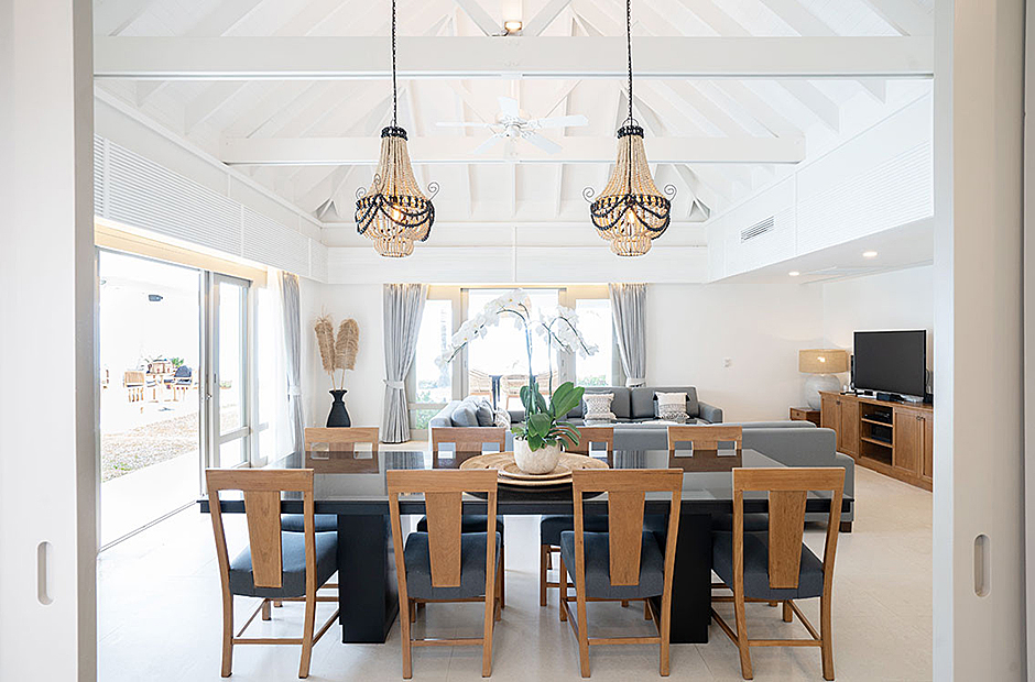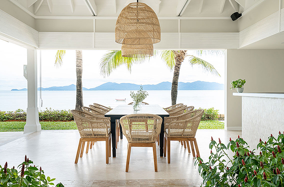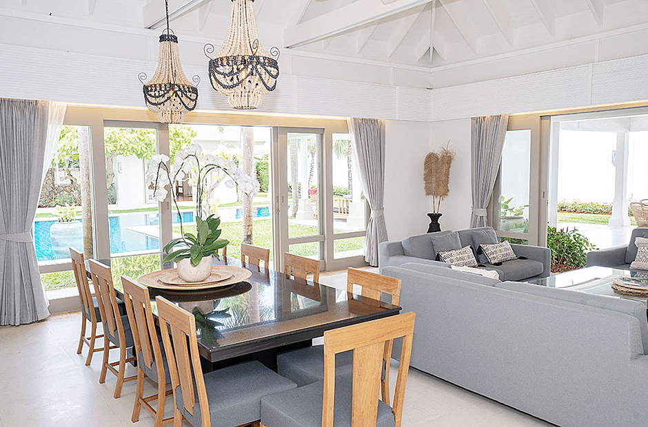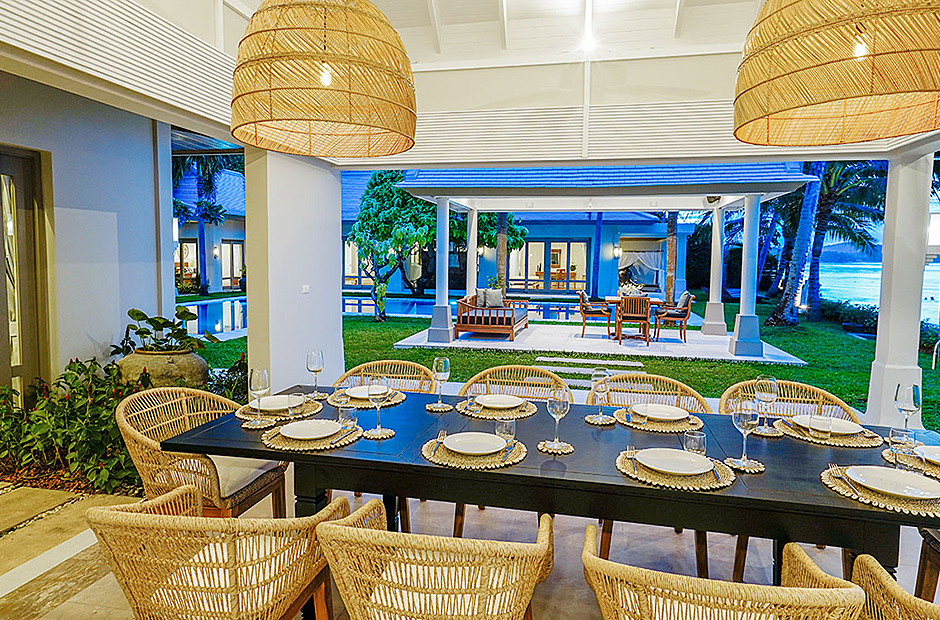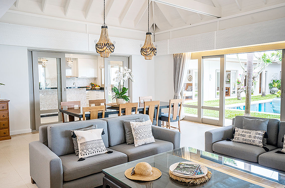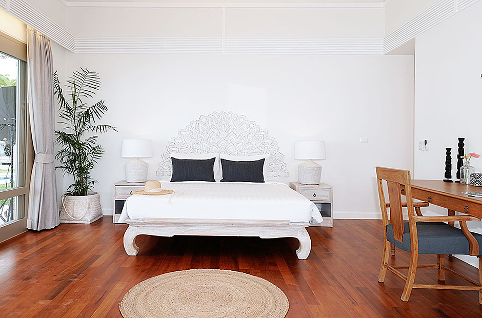 This stunning five-bedroom villa will transport you to Bali with its contemporary whitewashed interior, wood carvings and rattan furnishings. To make the most of the impressive 36 metres of beach frontage, each room is situated around the pool, while the spacious grounds feature tropical gardens, a shaded Thai sala and a large living area.