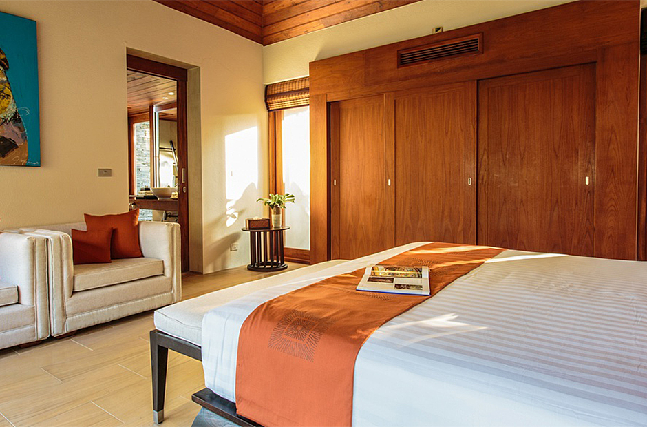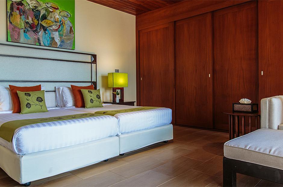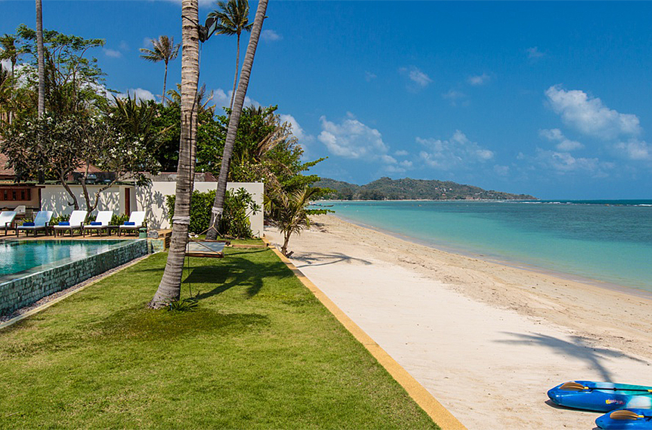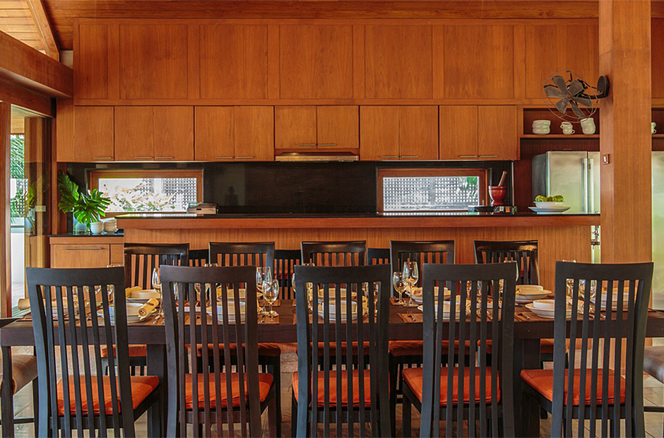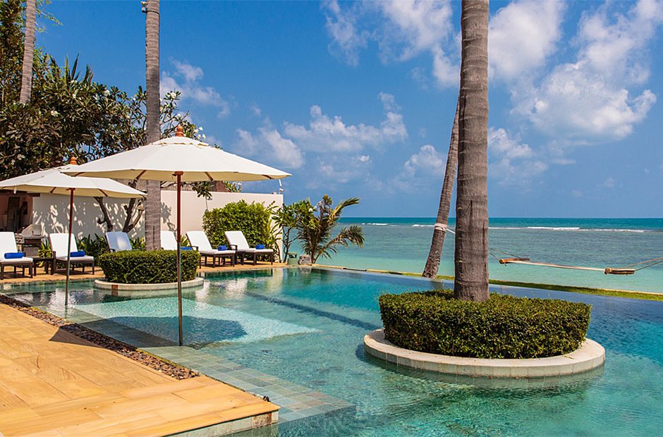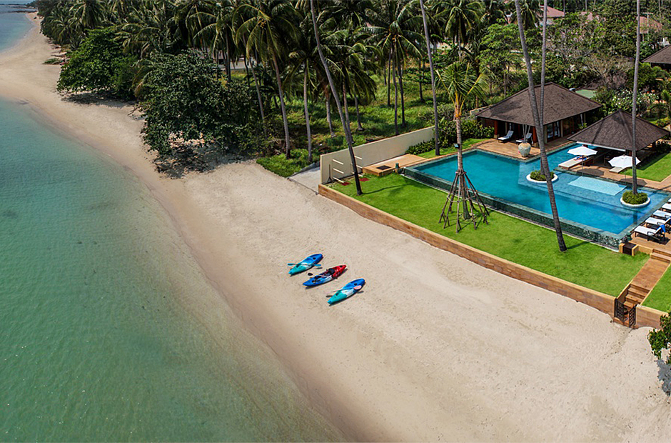 Designed by renowned architect David Clarke, this villa is absolutely the study in laid-back sophistication and modern tropical luxury. Every feature in this beach-located resort-style retreat has been thought out - from its stunning entrance, the grand double-storey pavilion, stunning views towards the azure seascape, the pavilion-wrapped T-shaped pool, home theatre, and each of the six air-conditioned ensuite bedrooms bedecked in three distinctive styles. Featuring six bedrooms including two master suites, each bedroom offers a private haven complete with King bed, entertainment system and an ensuite bathroom with outdoor courtyards or walk-in shower and bathtub, as well as direct access to the pool or sea. For al fresco days and nights, a lovely stone path leads to a stunning sunken poolside pavilion to enjoy delicious feasts whipped up by your very own personal Thai chef.