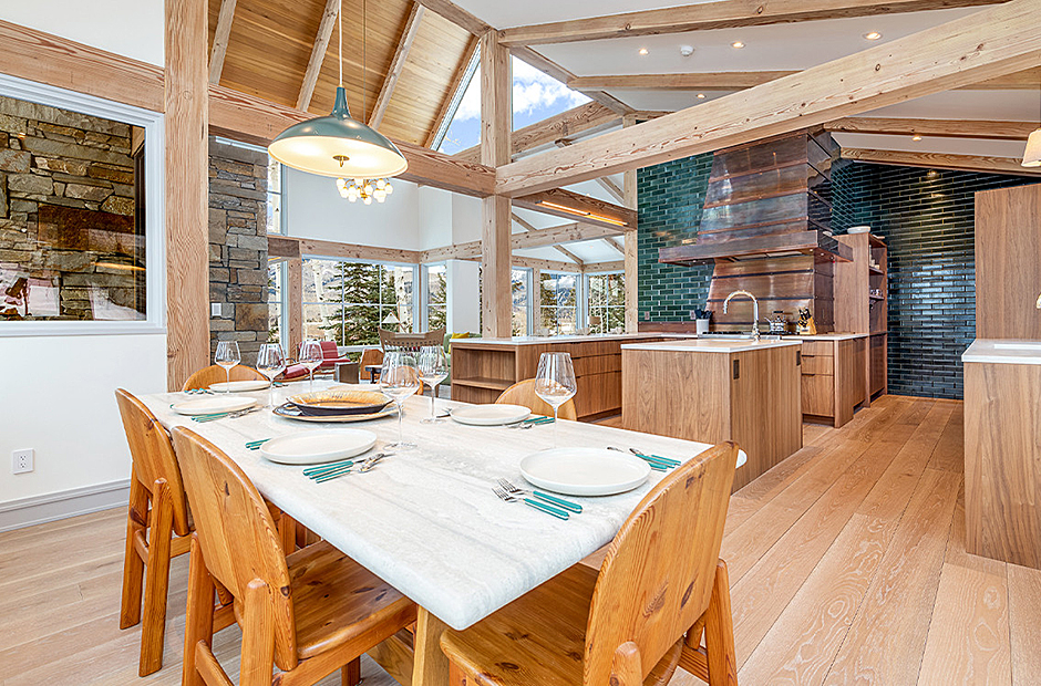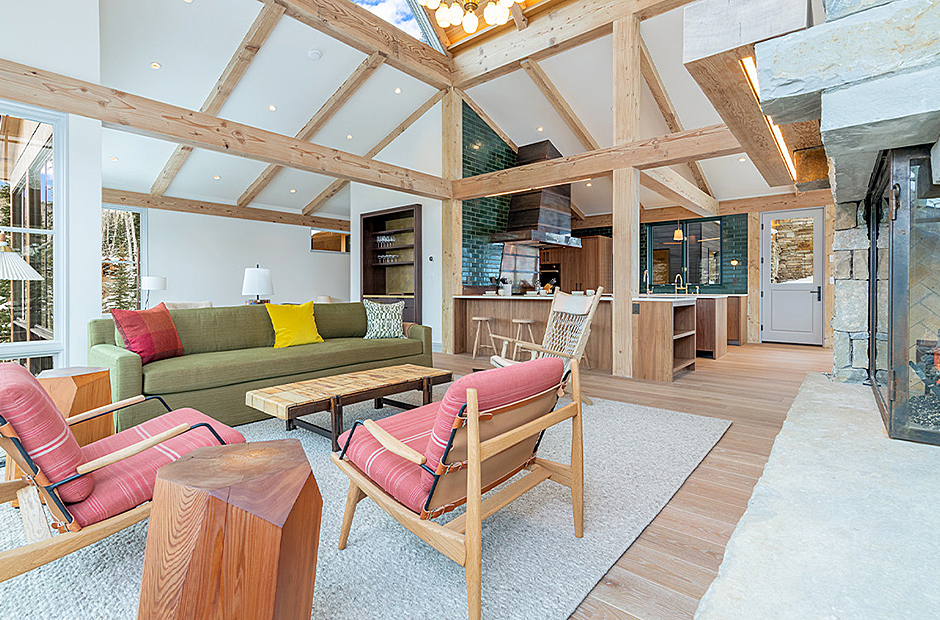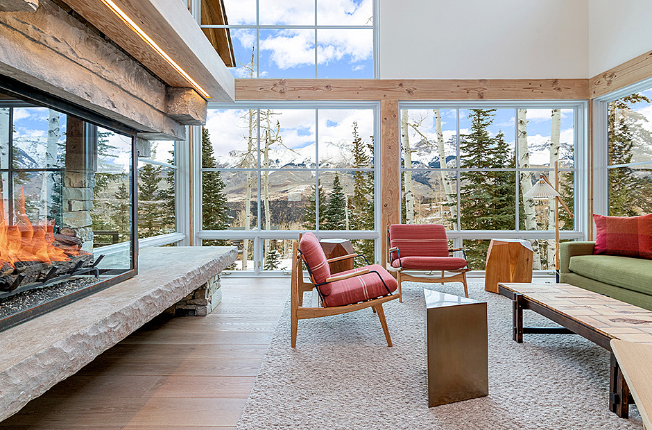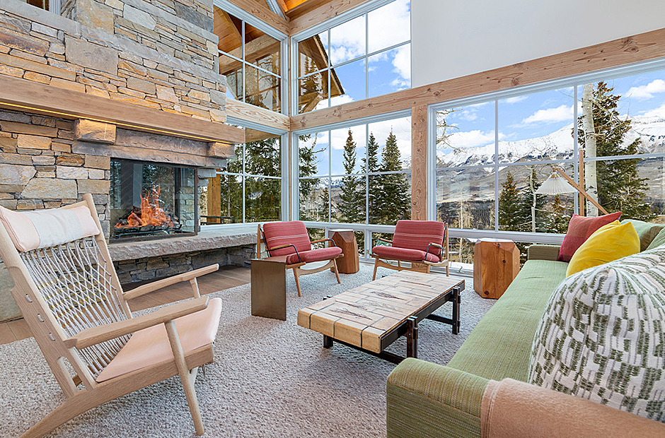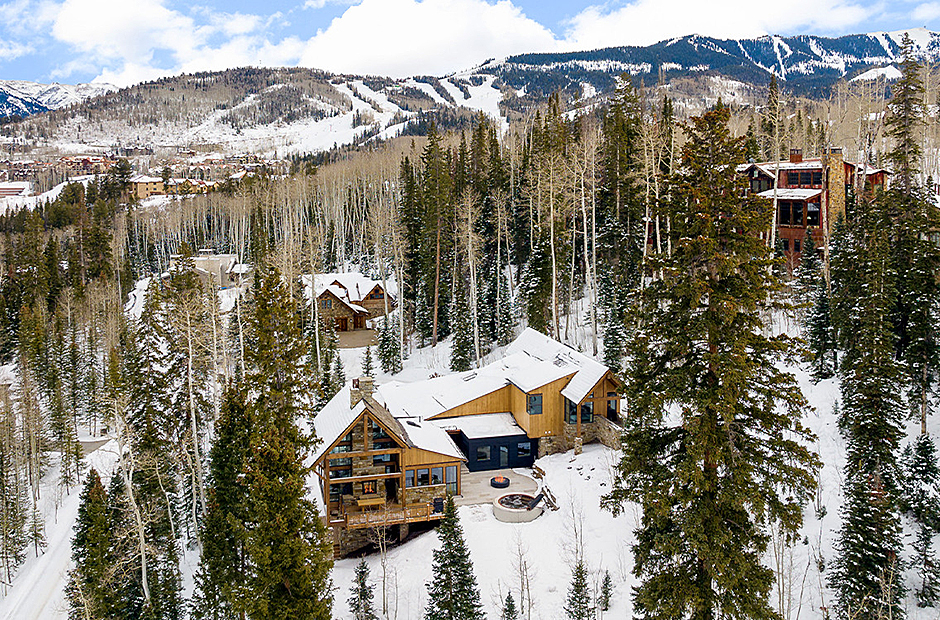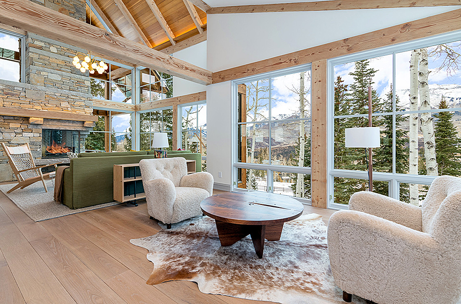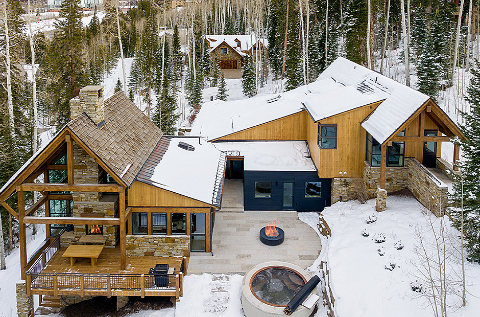 This four-bedroom estate, located in a famous resort, exemplifies modern mountain living.