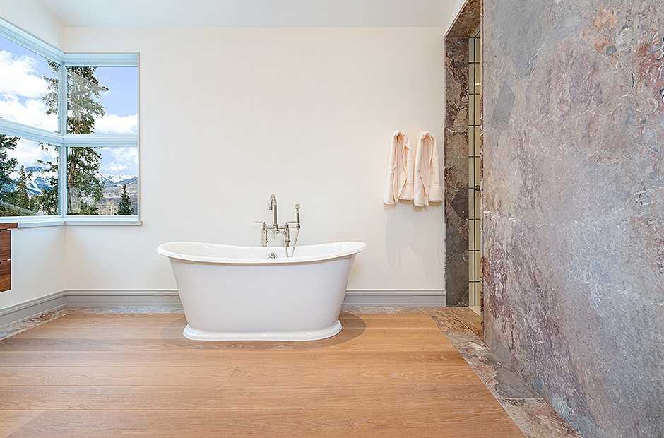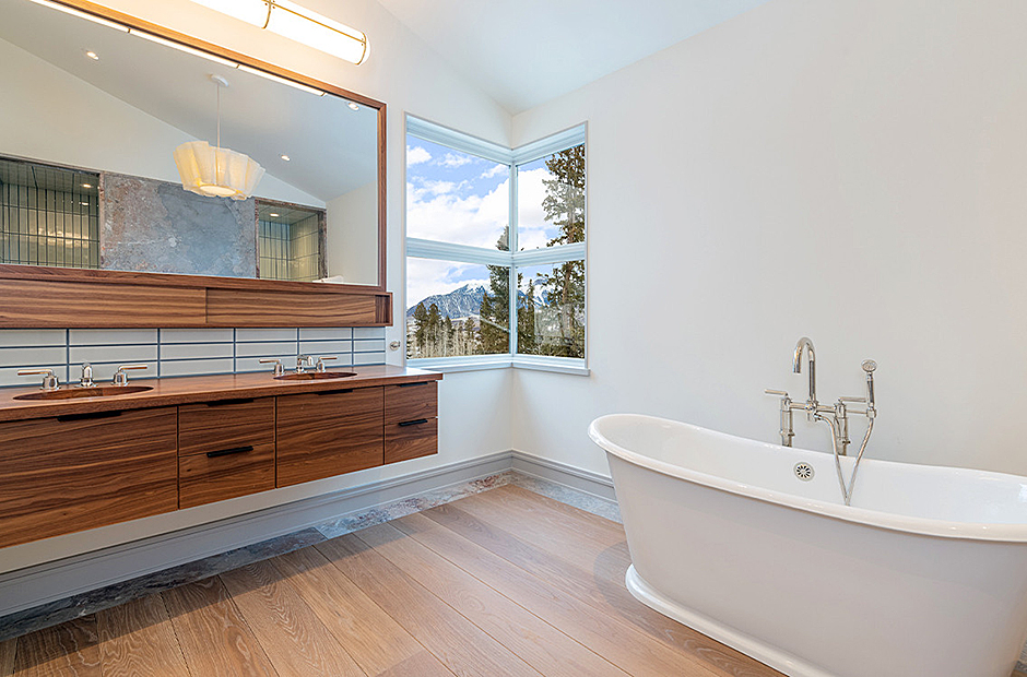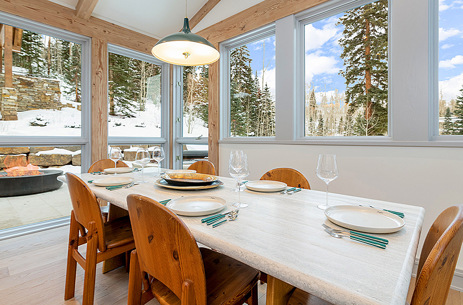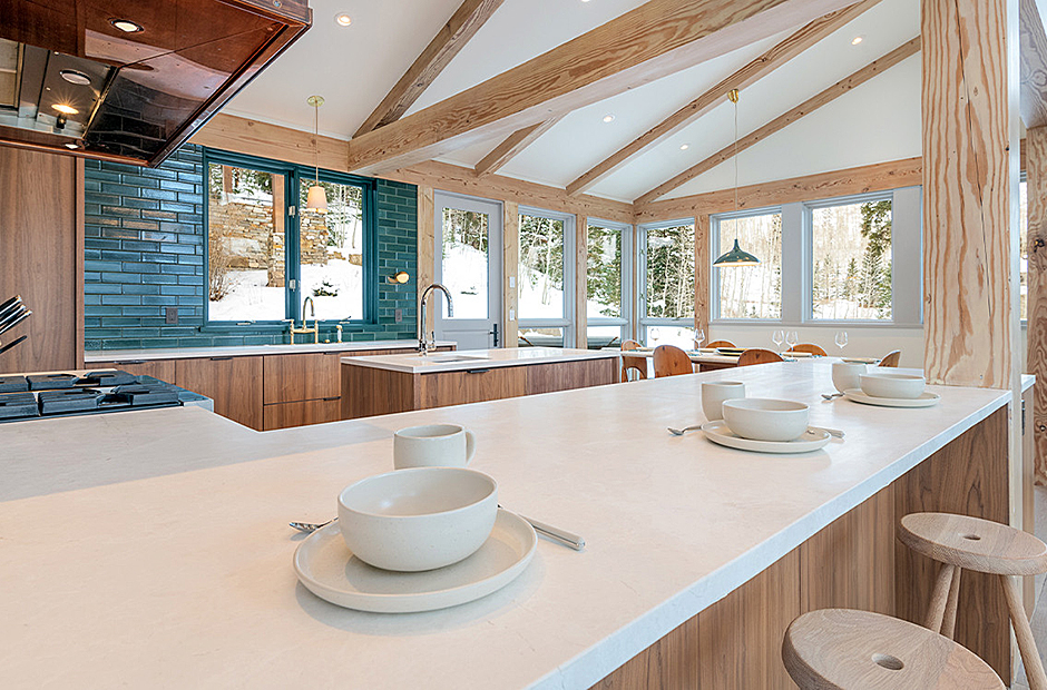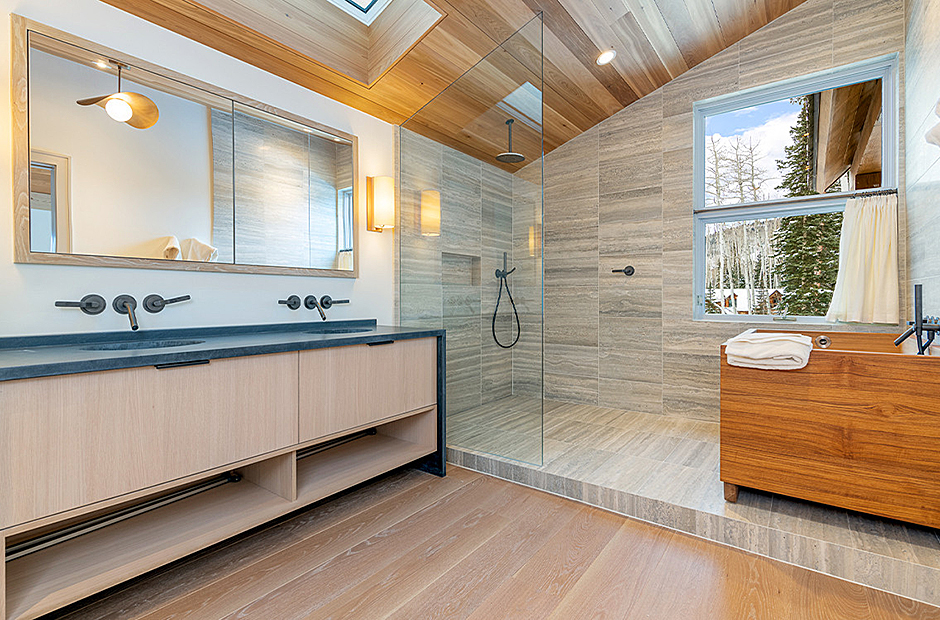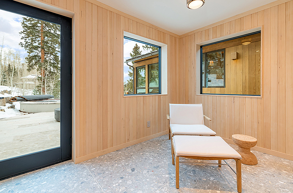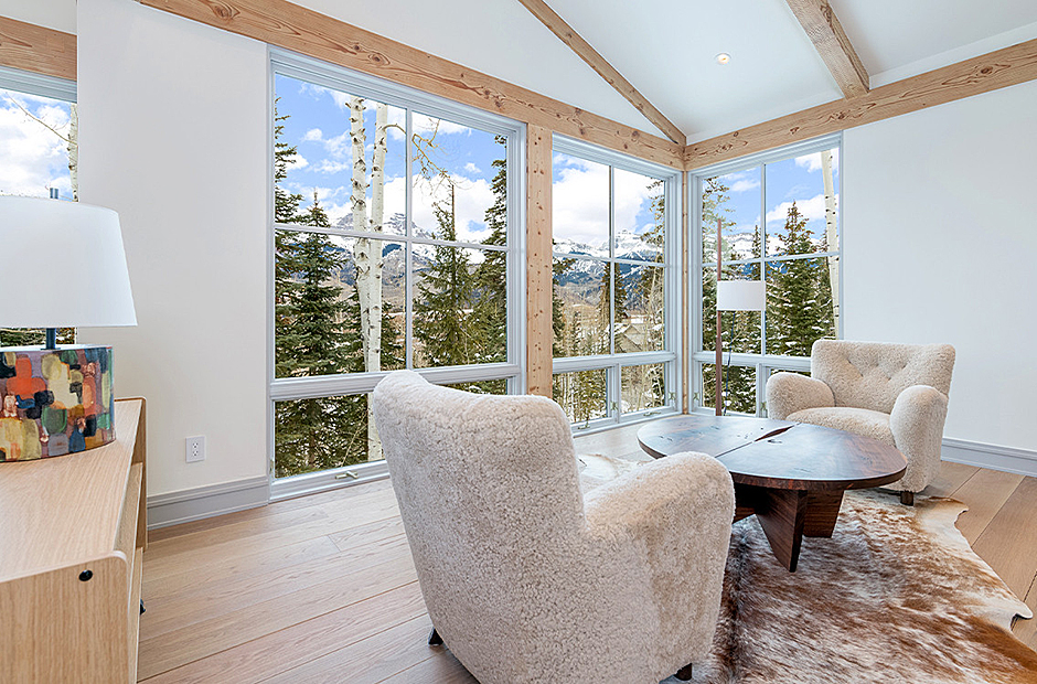 This four-bedroom estate, located in a famous resort, exemplifies modern mountain living.
