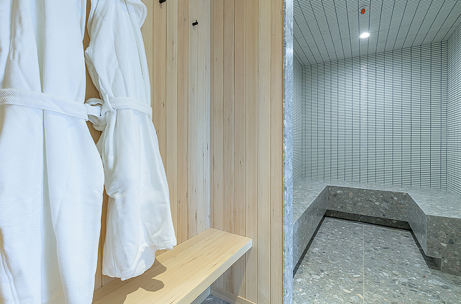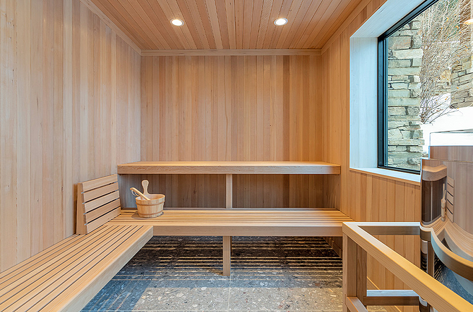 Additional amenities include a state-of-the-art in-home spa, accessible from the main floor patio, complete with a sauna, steam room, and oversized hot tub offering breathtaking views of the San Sophia Range.