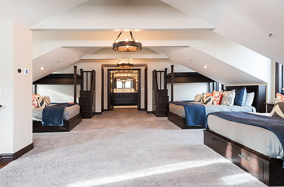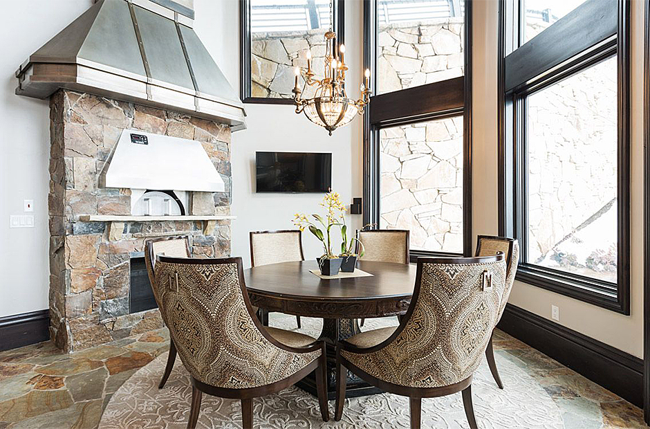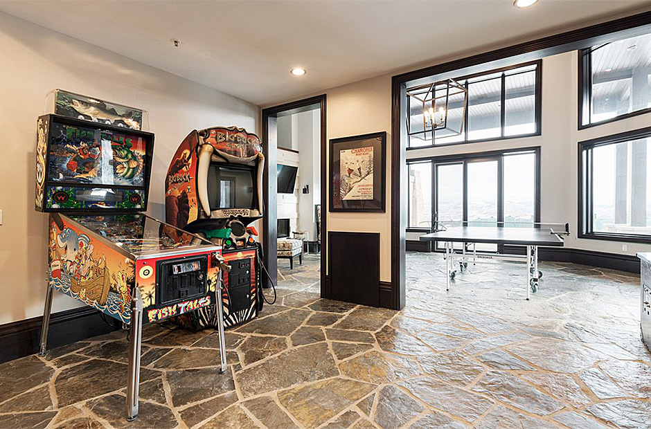 This lodge is a 14,000 square foot home that hosts multiple patios with gorgeous views of Jordanelle reservoir and the slopes of Deer Valley, a 20 person hot tub with beautiful mountain views, game room, billiards room, fitness room, theater with a soda fountain and a milk shake bar, business room with computers and a large pizza oven.