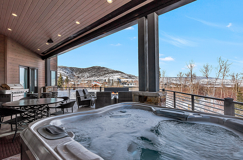 Generous decks surround the home, with extensive entertainment value. Enjoy the fire pit on the deck just off the kitchen and the Utah custom-made Bullfrog hot tub. The large lawn boasts added space and areas for entertainment.