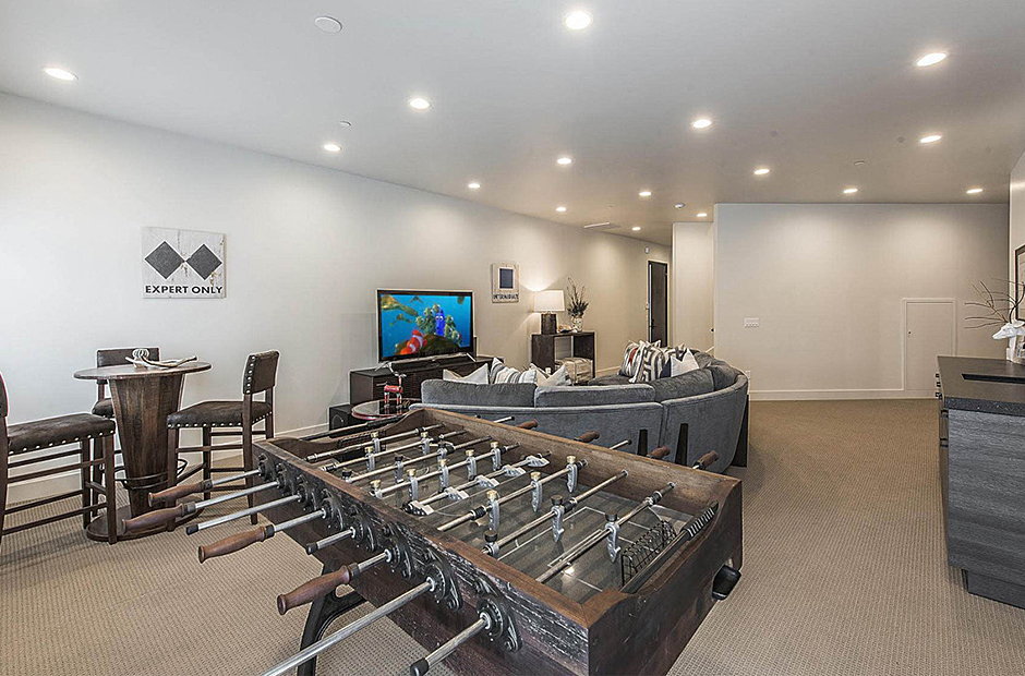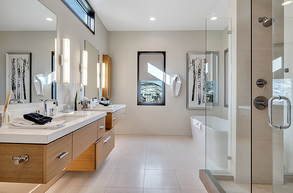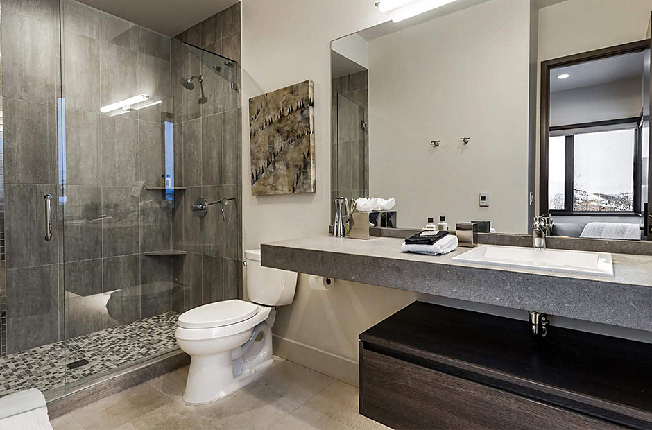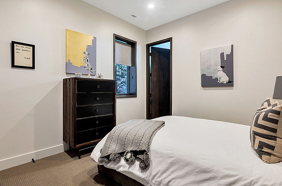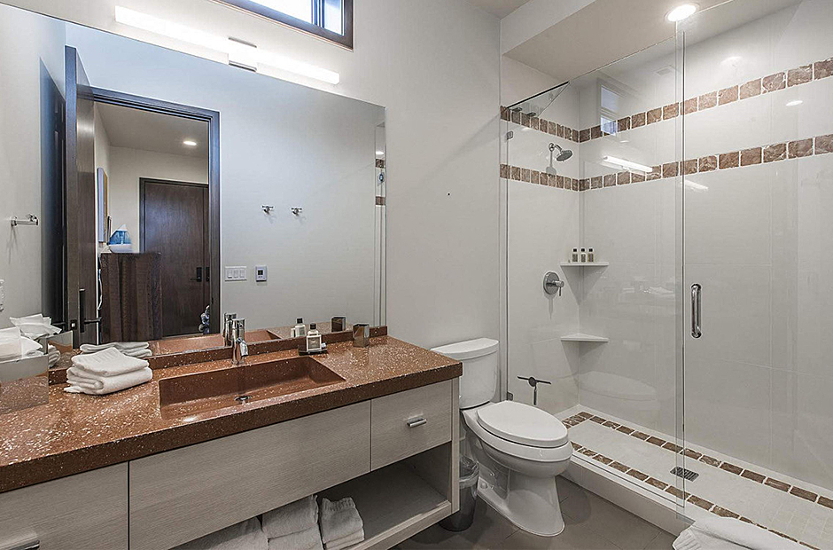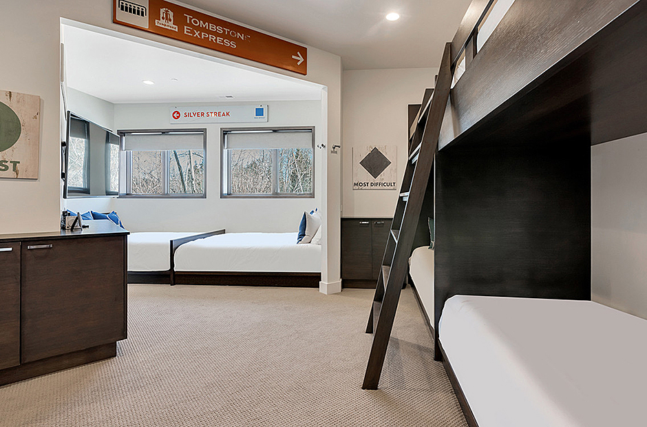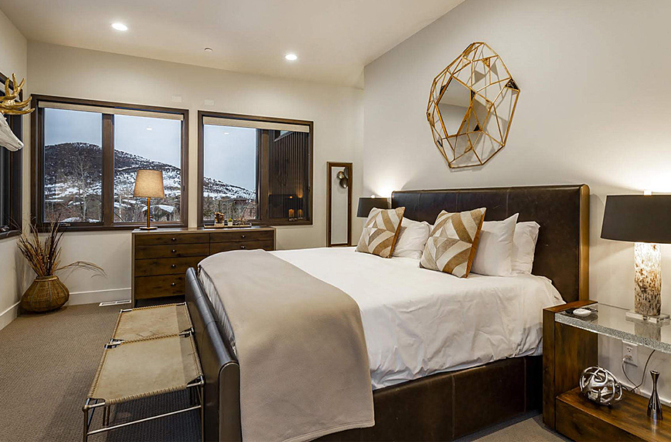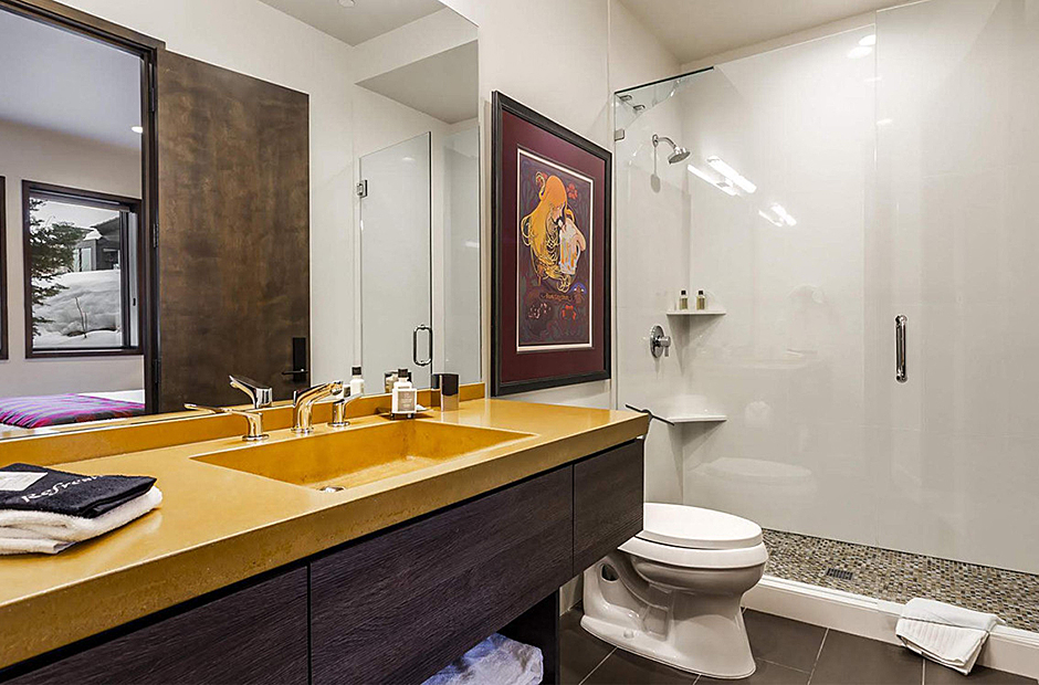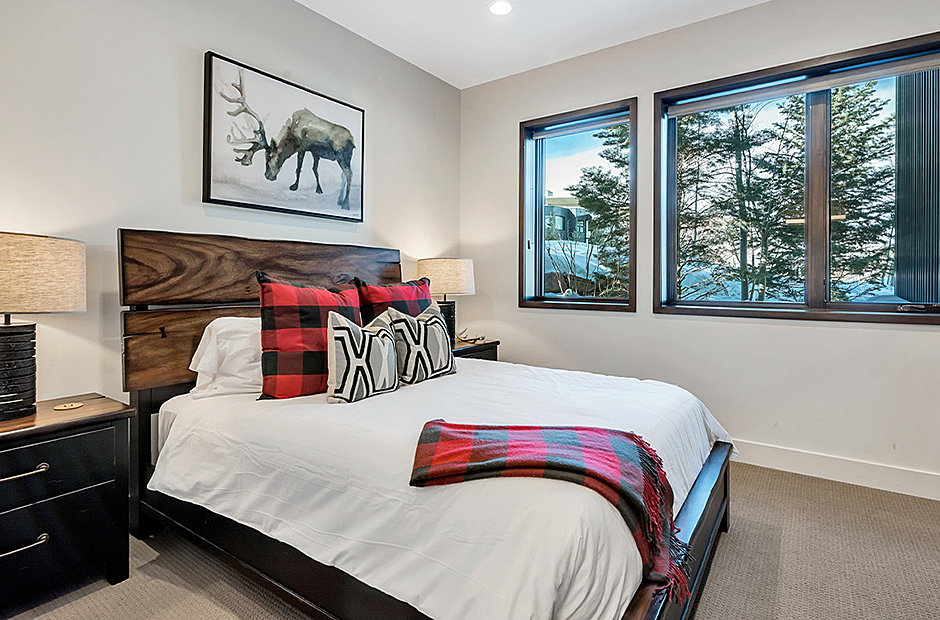 Offering six bedrooms, six bathrooms, and two powder rooms, each bedroom has an attached ensuite and can easily sleep up to 18 people. The Master Suite offers a fireplace, a double vanity en suite and stunning views of the mountain. Each bedroom offers open, contemporary design, providing a sense of space and warmth. The lower basement level offers an oversized bunk room and Jack and Jill bathroom. Adjacent to the bunk room is a family room featuring a wet bar and games, perfect for the kids.