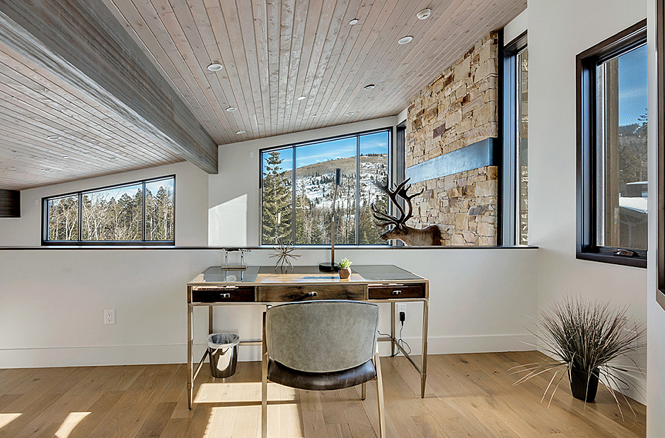 Additional space includes a cozy den and a ski/boot up room adjacent from the garage entrance.