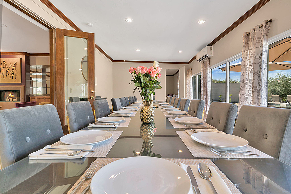 The main home features 7 bedrooms and 6 full bathrooms plus a huge open-concept living/kitchen area, and large indoor/outdoor dining area. The separate Casita / Guest House features 2 bedrooms and 1 full bathrooms downstairs, as well as 2 bedroom 1 bathroom apartment-style accommodation upstairs, including a small kitchen/dining area, and private deck.