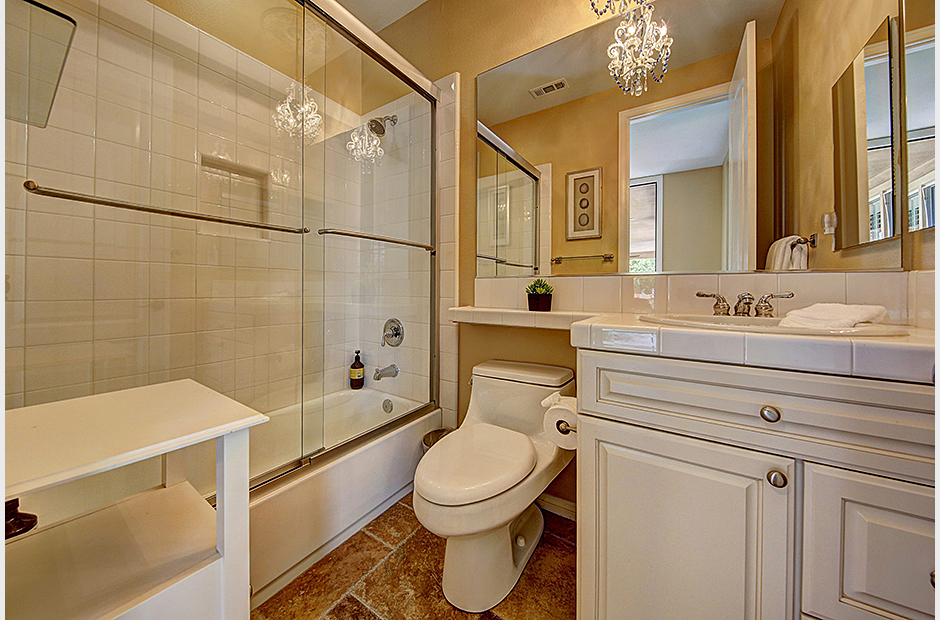 Four bedrooms are ensuite, including one in a detached casita with its own private entrance. The other two share a jack-and-jill bathroom.