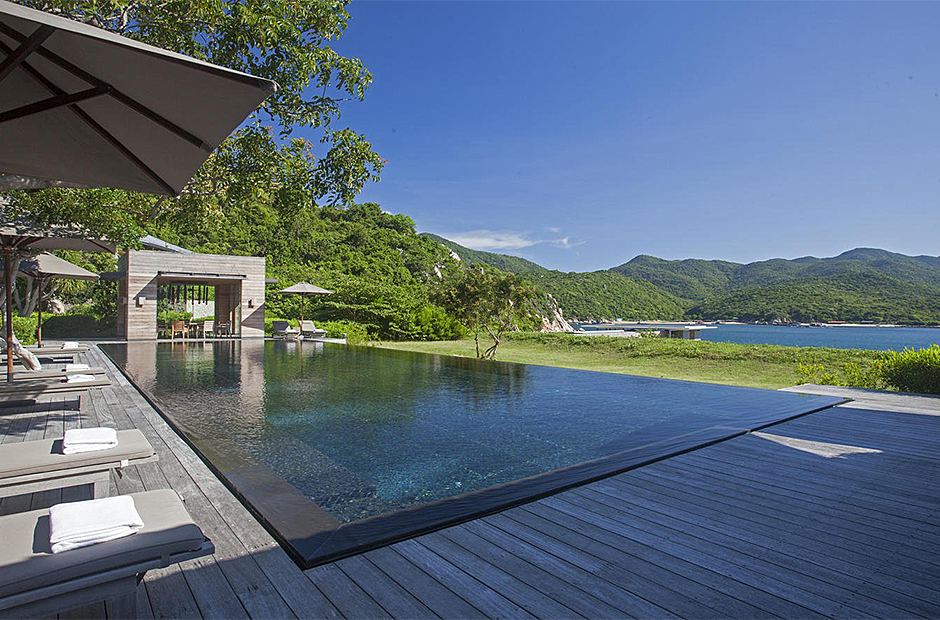 Spread over 1,000 square metres (10,764 square feet) with breathtaking views of Vinh Hy Bay, and embraced by Nui Chua National Park and features a lakeside Spa, this villa provides easy access to the beach and combines&nbs